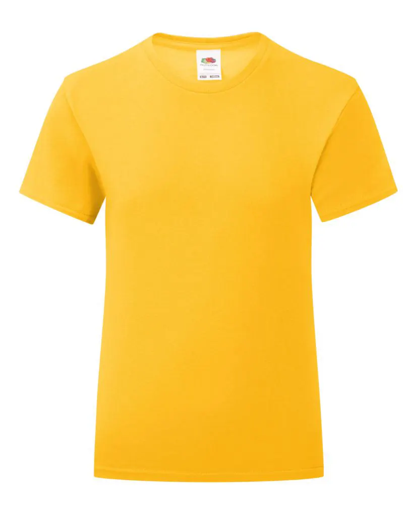 Buy Fruit Of The Loom Girls Iconic 150 Tee T-Shirt Online in UK for a stylish, soft, and durable girls’ tee. Made from 100% combed ringspun cotton, this UK children’s t-shirt features a slightly fitted shape, lightweight 150gsm fabric, and a narrow crew neck with Lycra® rib. Perfect for school, casual wear, or custom printing in the UK.
